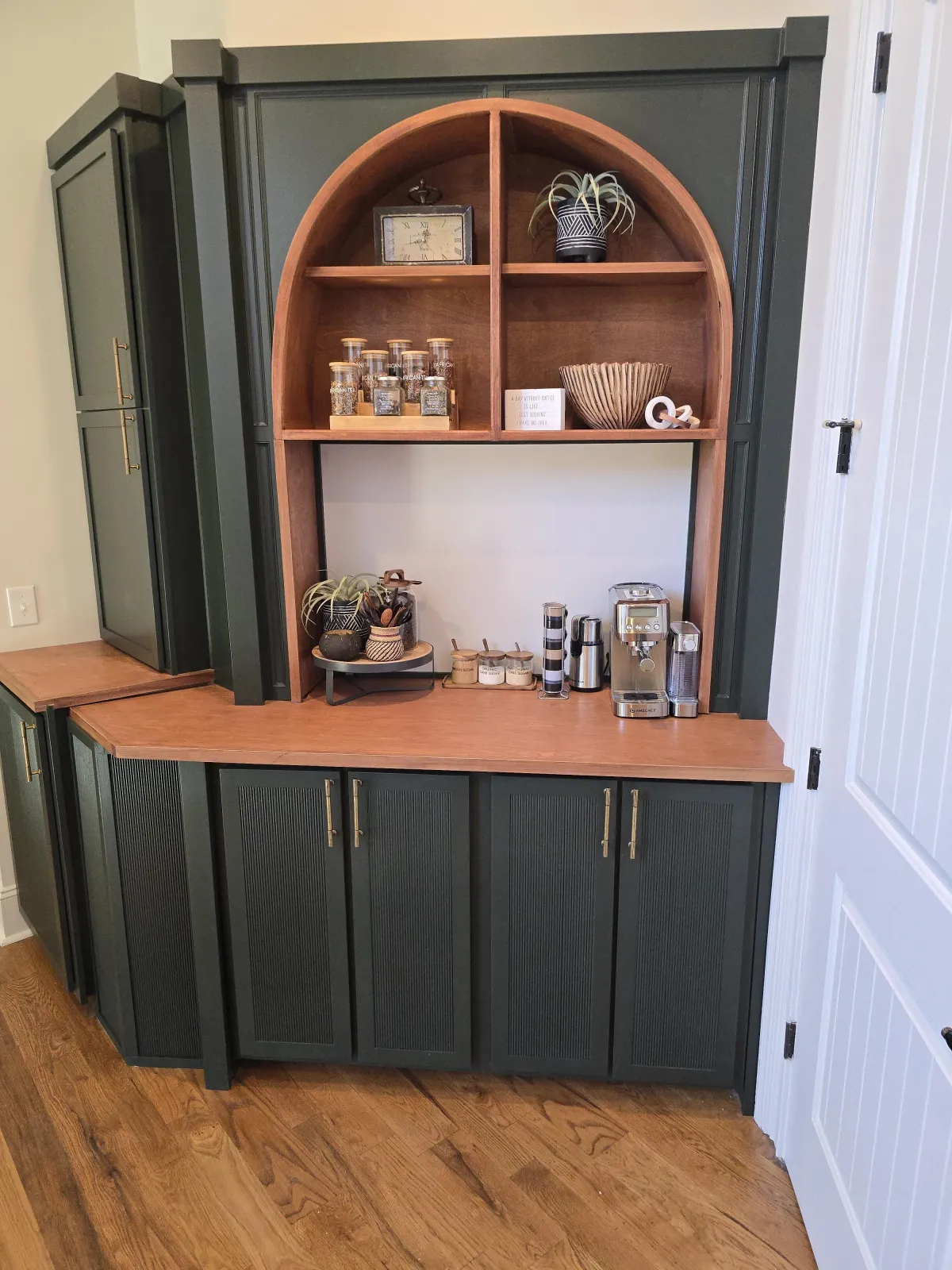 We specialize in custom cabinets, built-ins, closets, saunas, coffee bars, and full room transformations. We also take on select exterior and renovation projects—including porches, decks, and home remodels—when they align with our craftsmanship and design values.